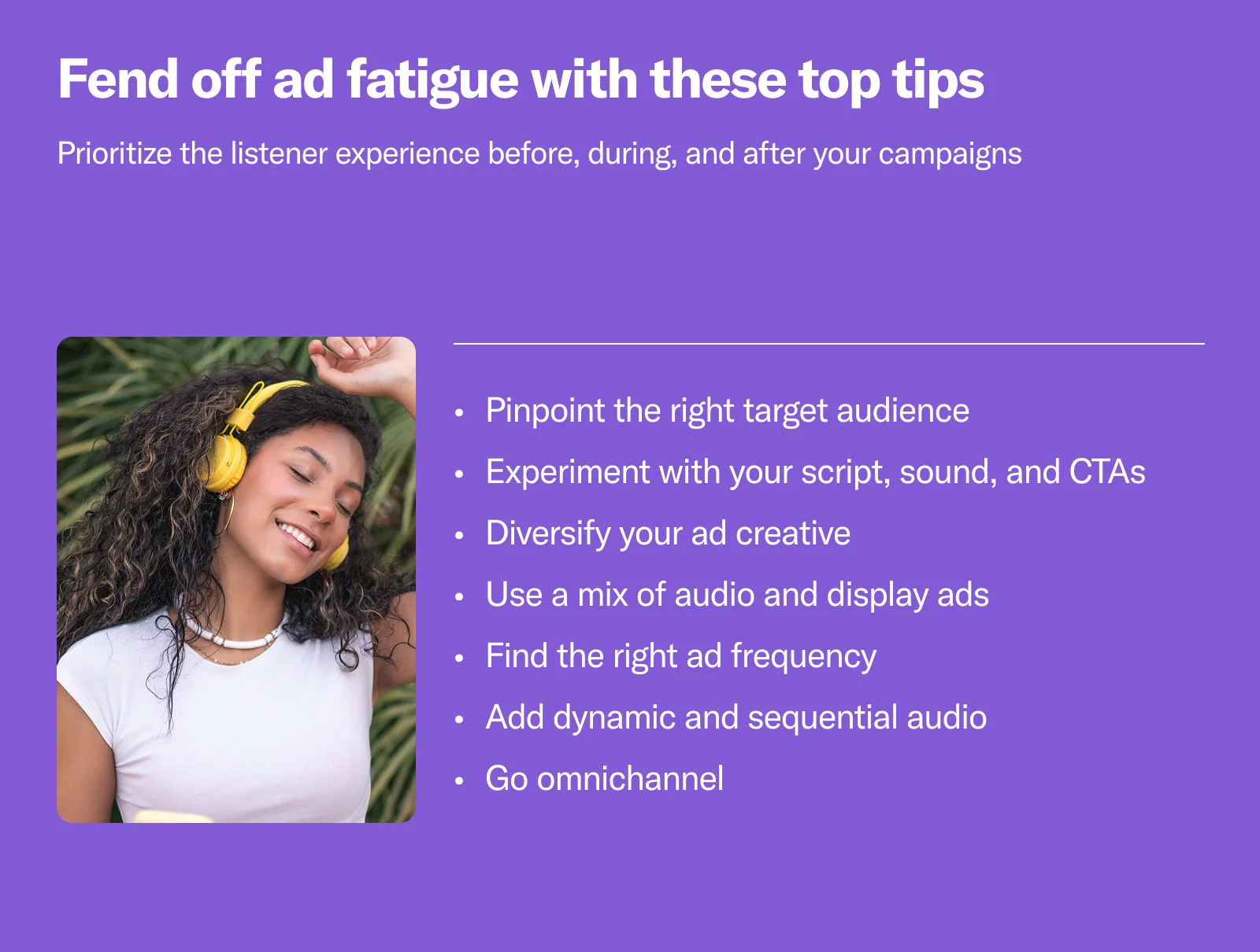 If ad fatigue creeps into your audio campaign, it can start to trigger multiple side effects.