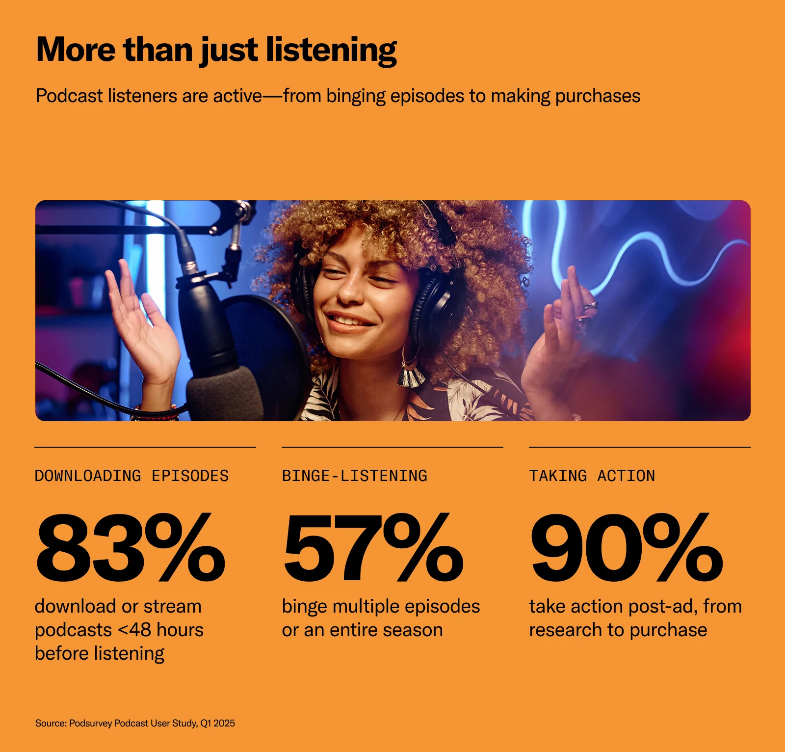 It’s worth repeating: Podcast listeners aren’t passive—they're engaged, loyal, and ready to act. As podcasts evolve, listener behavior evolves with it.